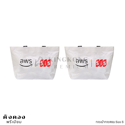แบบซ้ายมือ จะเป็นงานสกรีนลงผ้า ผลิตขั้นต่ำเพียง 100 ใบ และ แบบขวามือ จะเป็นงานพิมพ์ลงเนื้อผ้า ผลิตขั้นต่ำ 1,000 ใบ